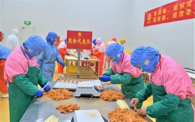 為提升生產(chǎn)加工效率讓基層員工有展現自我的機會(huì )形成“比、學(xué)、趕、幫、超”的氛圍,本次競賽共分為2個(gè)項目:小酥肉原料肉切條比賽和藤椒豬肉串穿串比賽。食品事業(yè)部各車(chē)間分別派出6名員工組成代表隊參與兩項比賽,在規定時(shí)間內根據加工產(chǎn)品的產(chǎn)量與合格率由現場(chǎng)品管進(jìn)行打分,***終兩項比賽得分相加決出本次競賽的總分和排名。