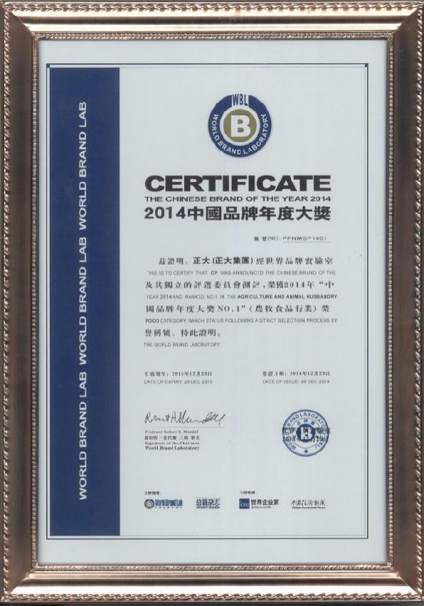 正大集團榮獲 “中國品牌年度大獎***”榮譽(yù)稱(chēng)號